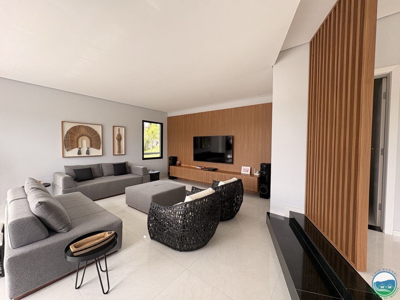 Sala de estar e TV com varanda