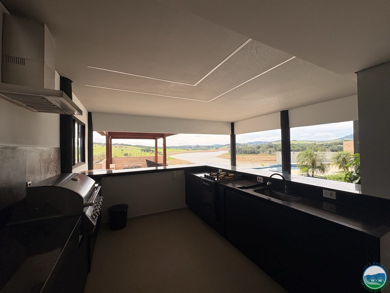 Espaço gourmet coberto com churrasqueira e cozinha externa